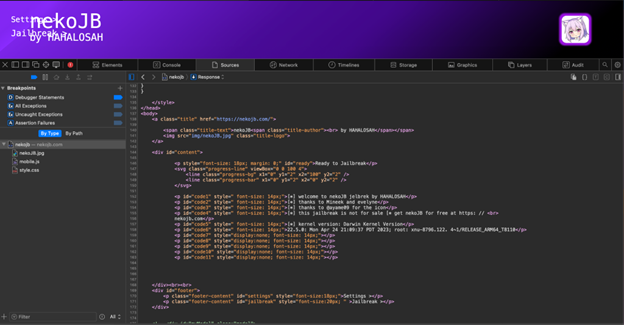 After installing the nekoJB Online “app”, we can see that this is another.mobileconfig profile that contains a web clip redirecting the user to https://nekojb.com/source/nekojb. On this web page we can see that it bears almost an identical resemblance to the nekoJB IPA (Figure 1-3).